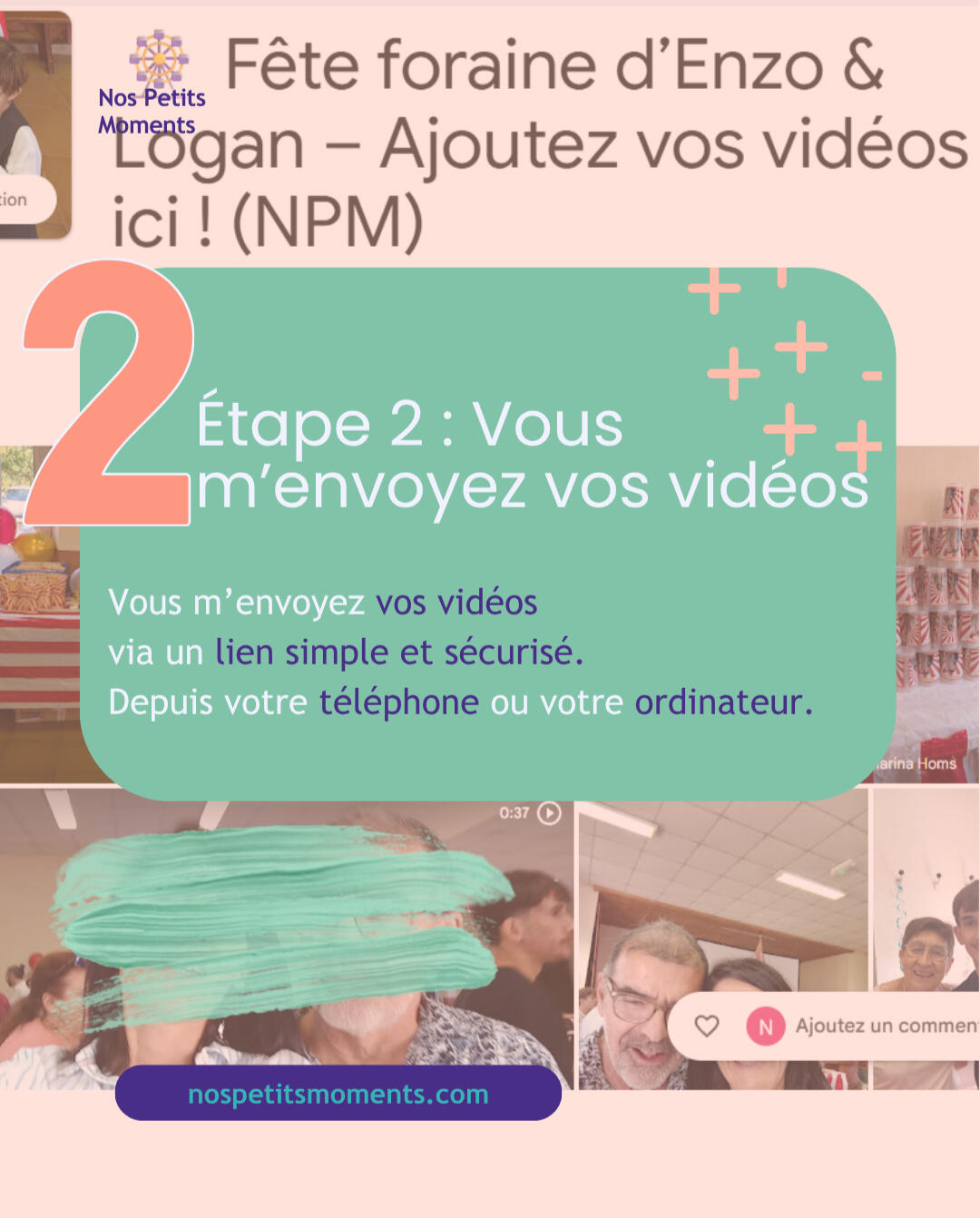 🤝 Film collectif ? Le même lien de dépôt peut être partagé à plusieurs proches pour rassembler les vidéos au même endroit.