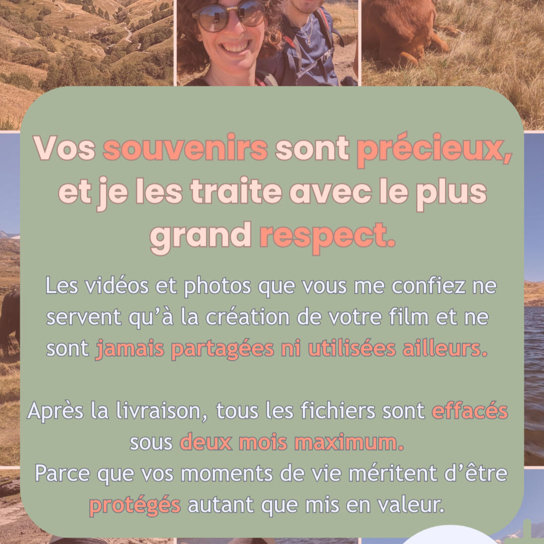 💌 Après votre commande, vous recevrez un email avec toutes les étapes pour m’envoyer les vidéos et préciser le ton du film.