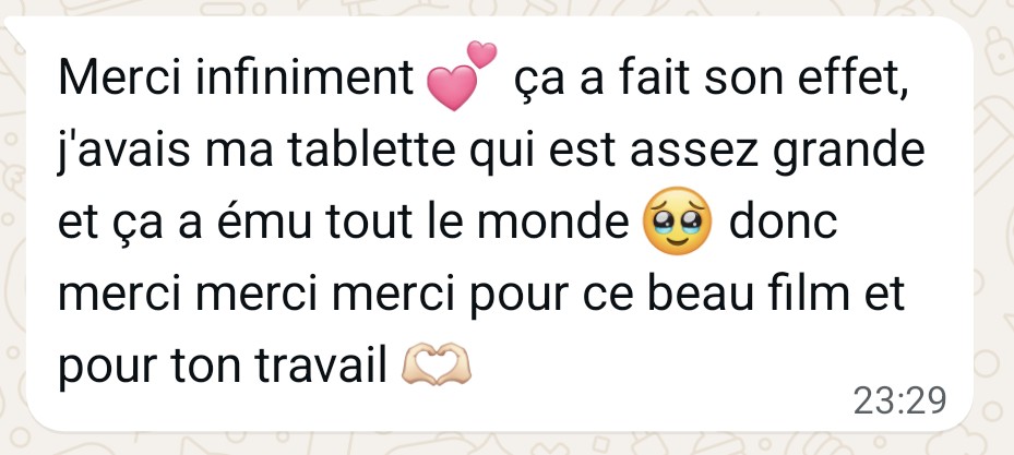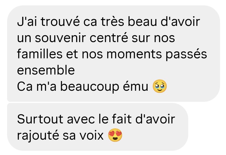 Sous 3 semaines maximum, vous recevez votre film. PrĂȘt Ă ĂȘtre regardĂ©, partagĂ© et gardĂ© pour toujours.